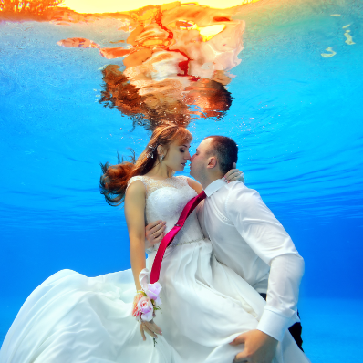 Surreal View From The Bottom Of The River To The Sky, To A Tree Leaning Over The