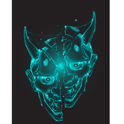 Blue Glowing Line Art Background Image Of A Kabuki Mask.