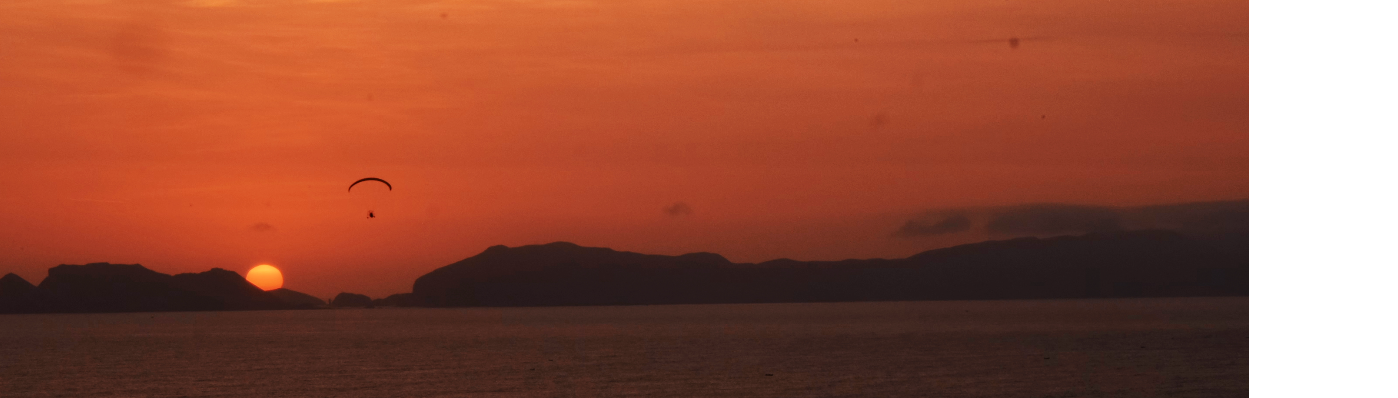 Paragliding With Island In Background At Sunset