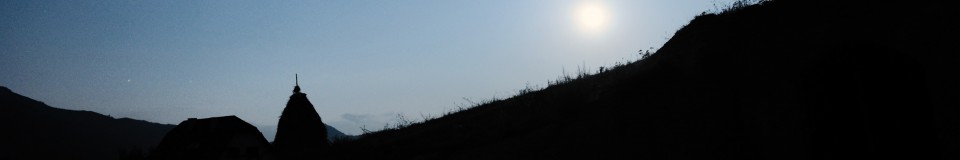 Peaceful Rural Hill Area, Old House, Mountains And Rolling Clouds Landscape