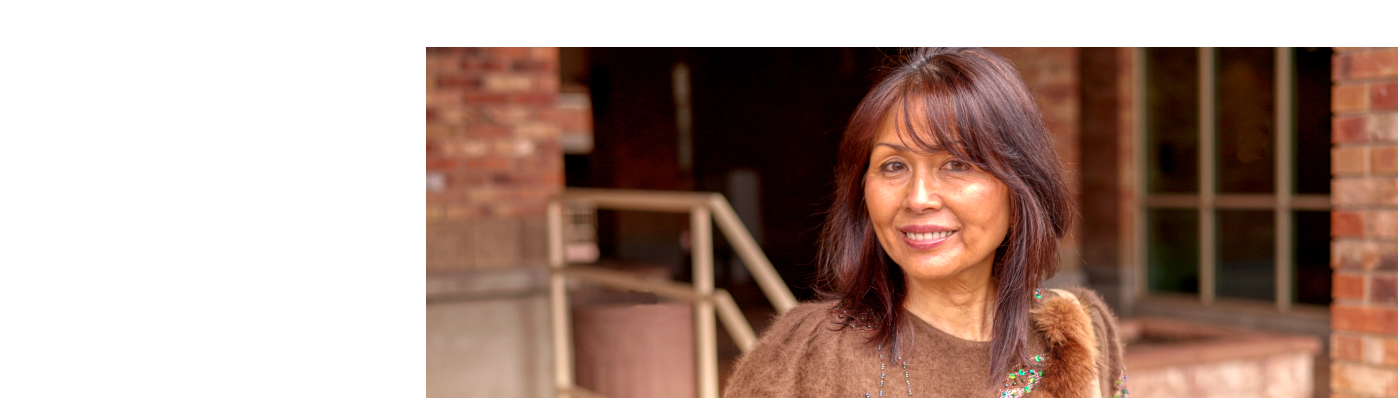 Beautiful Older Asian Woman With Long Hair Texts On Cell Phone
