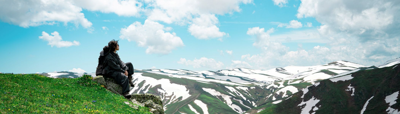 A Set Of Shots: Hiking Trails At The Foot Of The Snow-Capped Mountains