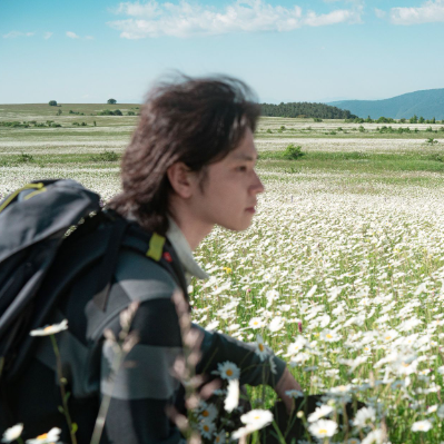 The Breeze Blows On The Green Hillside Full Of Daisies And Flowers