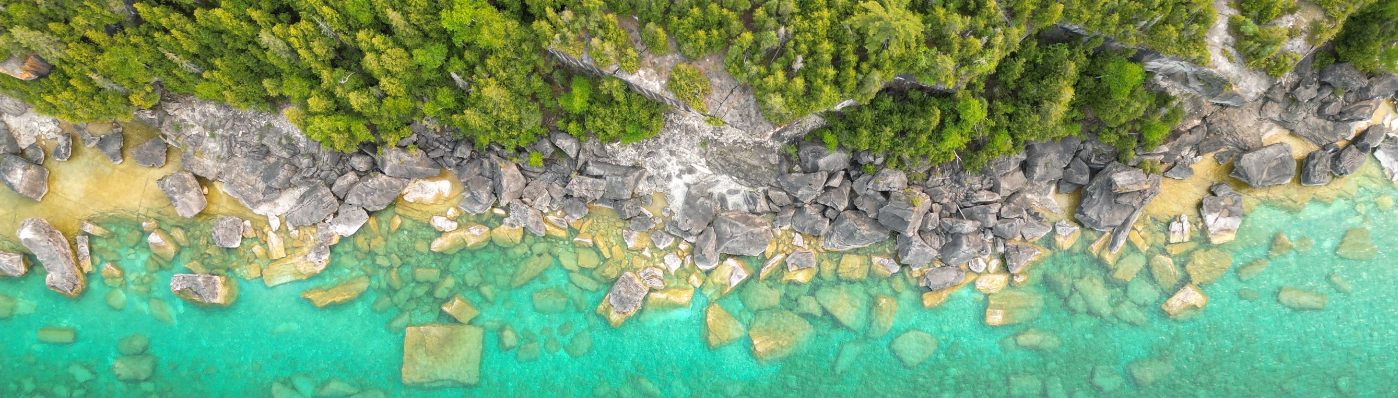 Drone Flying Over Coast Of Bruce Peninsula. Ontario, Canada
