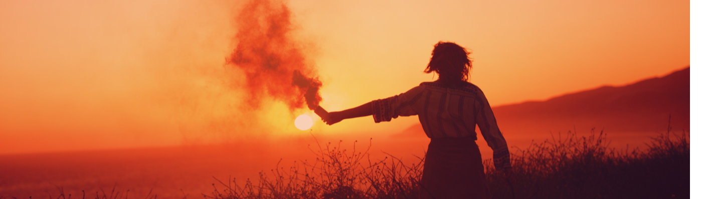 Female Explorer Holds Up Compass Light Flair