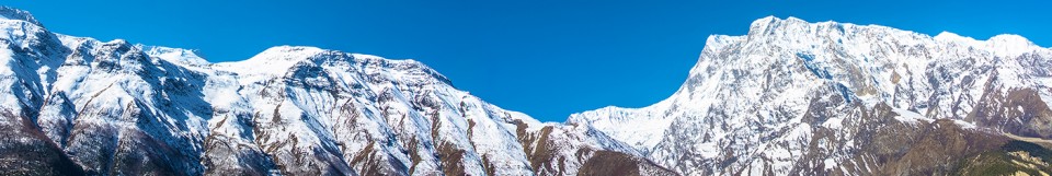 Mountain Landscape With Trees, Bushes And Snowy Mountains, Nepal.