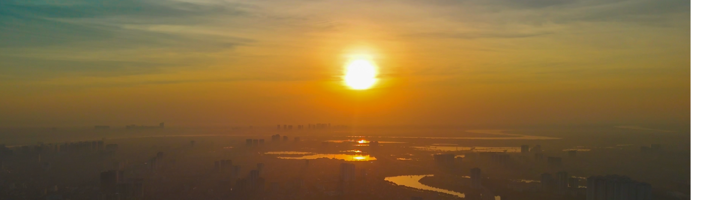 An Atmospheric Aerial View Of Hanoi At Sunset