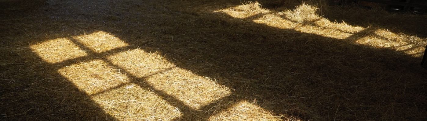 Young Sheep Eating Hay In A Barn.