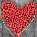 Wild Rose Hips Pink Flowers Against Bright Blue Sky. Natural Flowers Background
