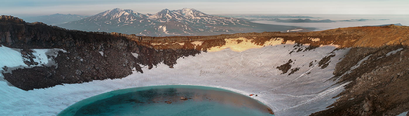 Sunrise From The Top Of The Gorely Volcano On Kamchatka In Russia.