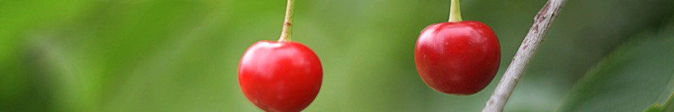 Two Ripe Cherries Hanging On A Tree