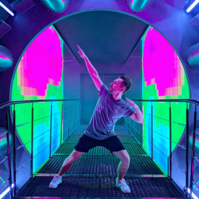 A Male Runner Stretches His Legs On The Railings Before A Night Run
