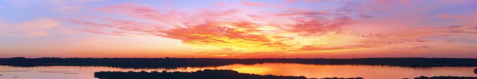 Morning Sun Reflected On River Above Forest