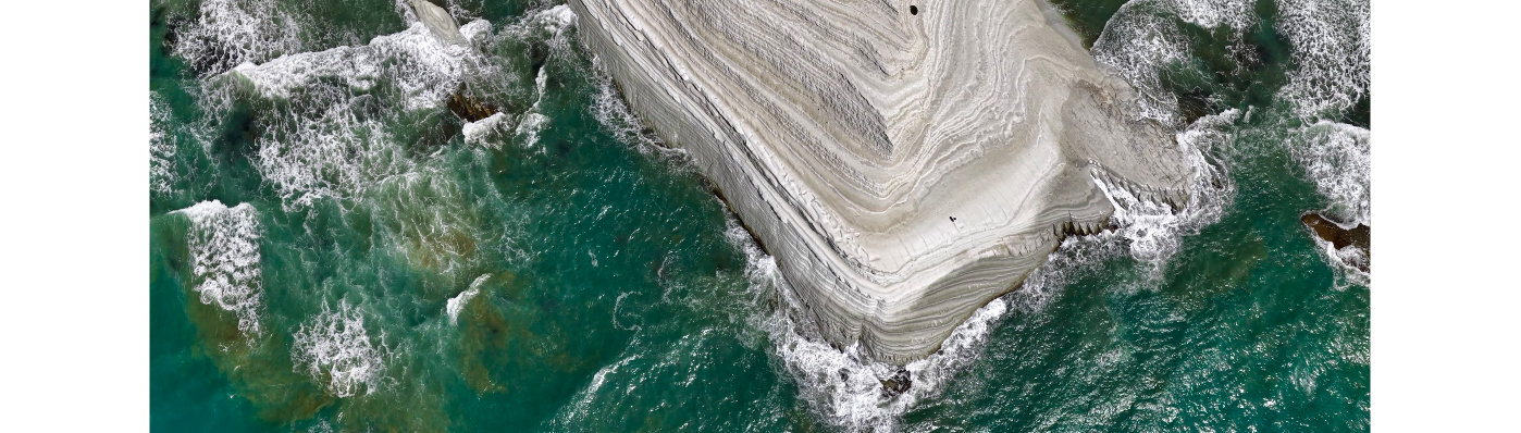 Drone Reveal Of Scala Dei Turchi White Cliffs With Waves On Coastline, Sicily