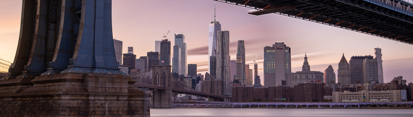 Brooklyn Bridge And Manhattan Bridge Seen Between Skyscraper