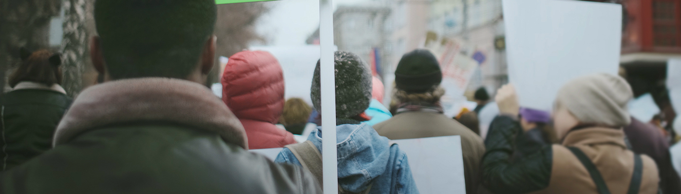 Social Unrest On Streets Due To Civil Rights Activism. Protesters With Banners.