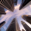 Golden Hour Lookup To Singapore Business District Skyscraper In Timelapse