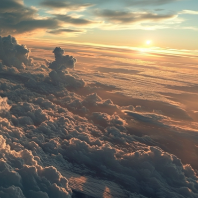 View From Airliner At High Altitude Of Large Cumulus Storm Clouds.
