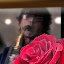 Red Rose Flower, Saxophone And Candlestick On A Window Sill At Sunset