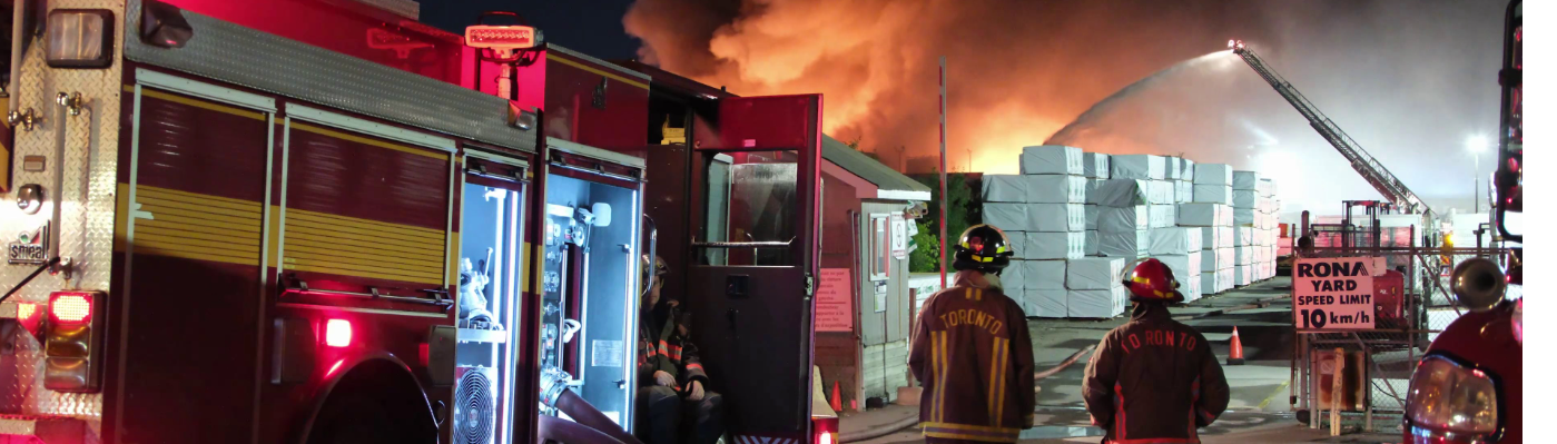 Fireman Climbing Ladder In Front Of Heavy Black Smoke