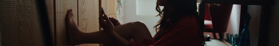 Beautiful Young Girl With Dark Curly Hair Using Her Cell Phone, Outdoor.