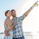 Young Woman In Hat Watching On The Sea