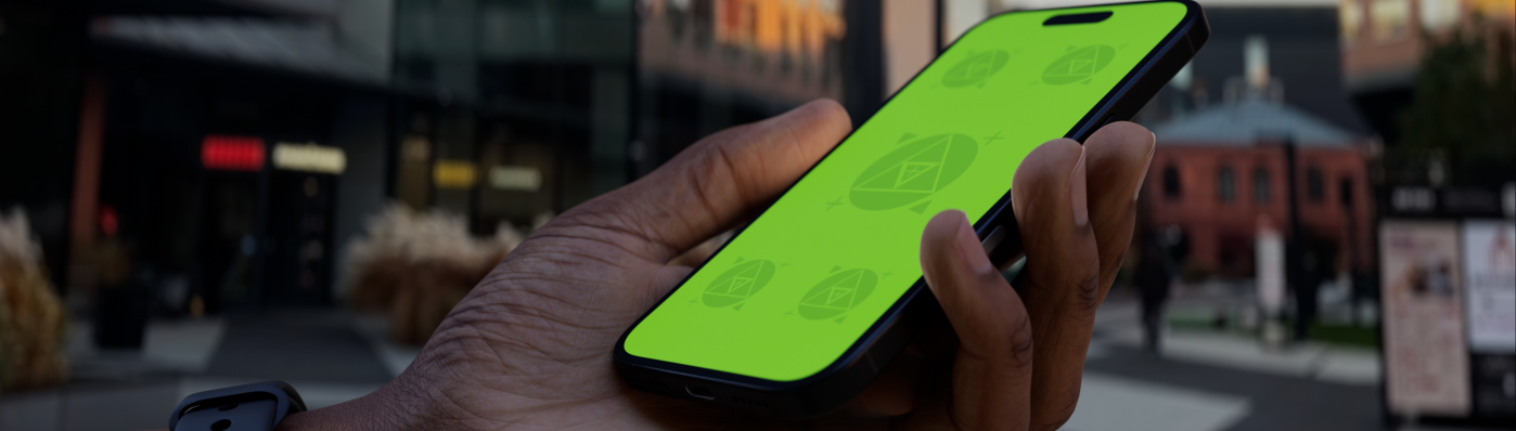 Morning Scene In An Outdoor Urban Area With A Person Holding A Smartphone