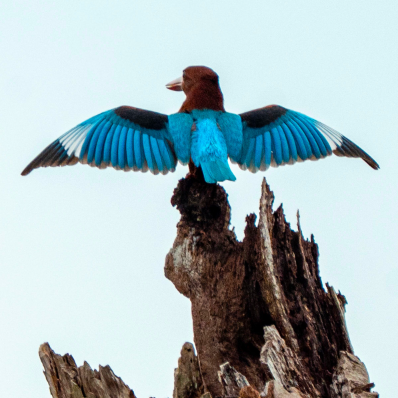 White Throated Kingfisher Perched On A Bare Branch