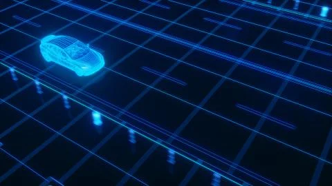 Autonomous Self Driving Electric Car Rides On The Road