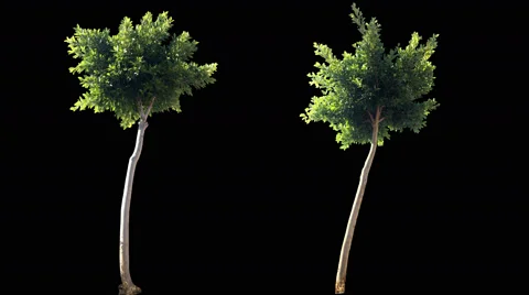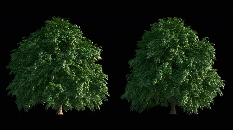 (19)blowing on the wind beautiful green full size real trees isolated on alpha channel with black and white luminance matte, perfect for digital composition
