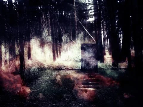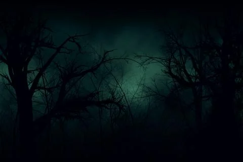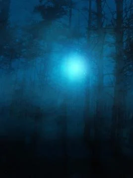Night Foggy Forest Road And Ghosts