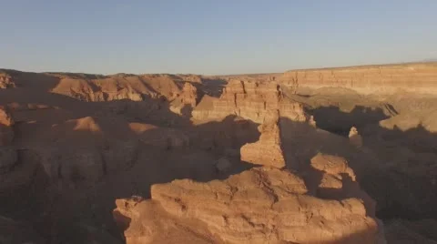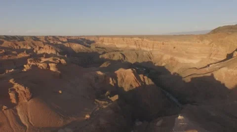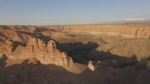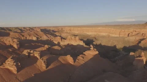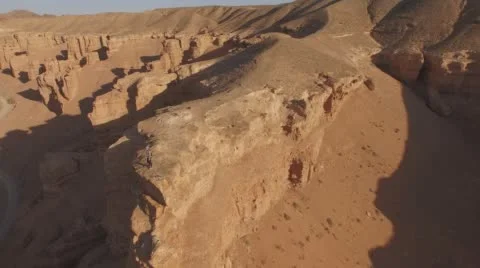 (127)Top View Of The Canyons. Young girl walking through the Canyons. Kazakhstan, Charyn canyon 2015
