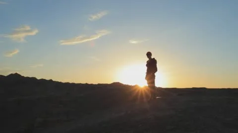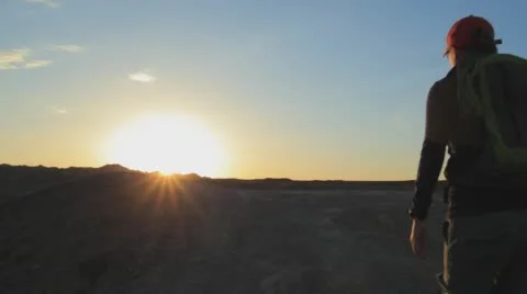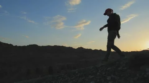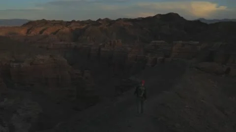 Top View Of The Canyons. Young girl walking through the Canyons. Kazakhstan, Charyn canyon 2015