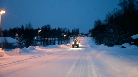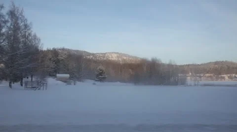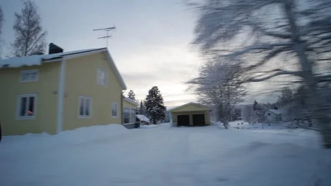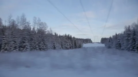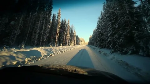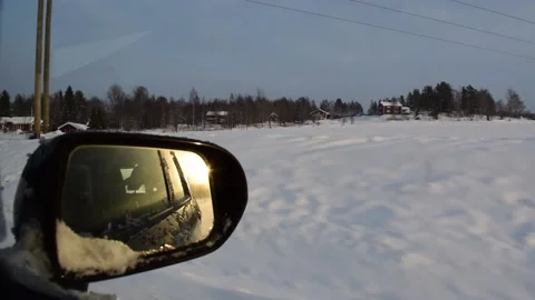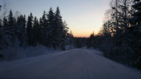 Driving in a car on snowy roads through northern Sweden.