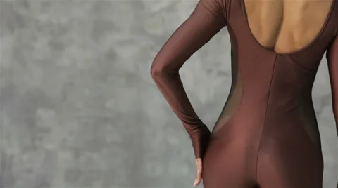Athletic girl on a gray background