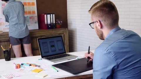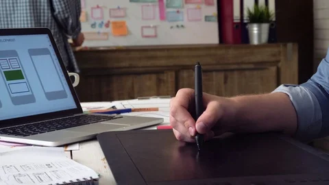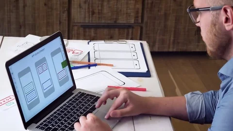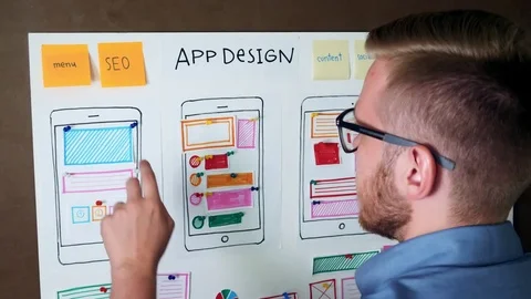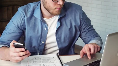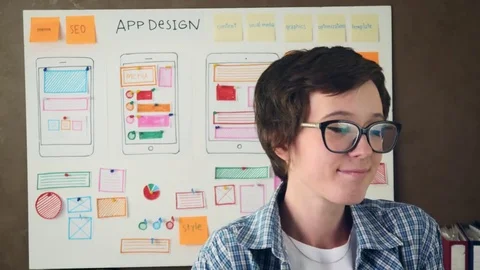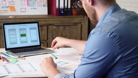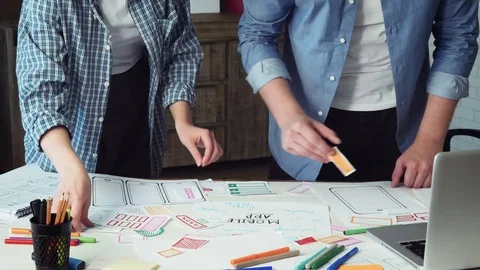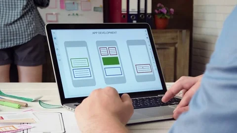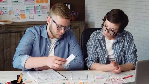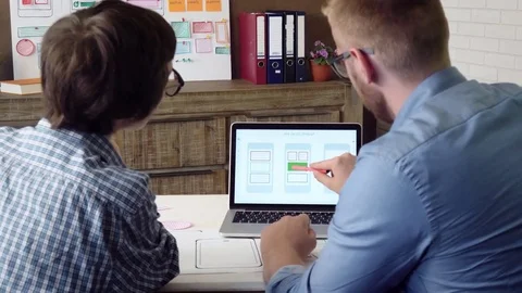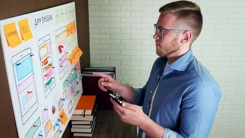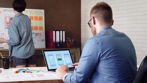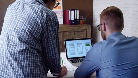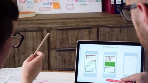 Mobile developers creating smartphone application Stock Footage