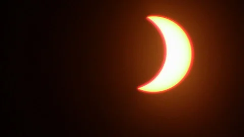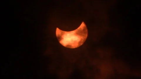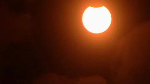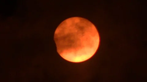 (10)Solar Eclipse Progression 10 clips - blood red and black clouds against a dark sky during a partial solar eclipse. 2017 North America