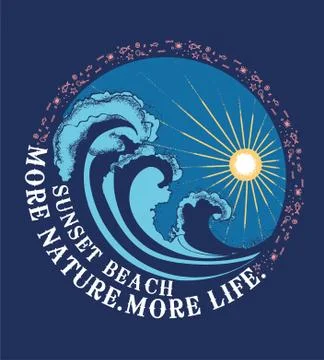 surf theme text with waves and and sun vector illustrations. For t-shirt prints and other uses.