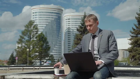 Footages of Business People Eating and Working Outside Office
