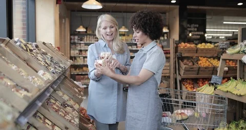 Young adults and seniors at the local supermarket.