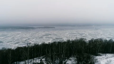 Spring ice drift, winter forests anв fields