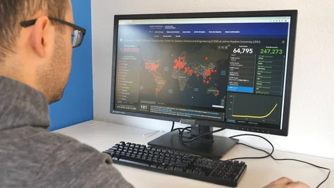 (79)A collection of curated clips regarding the Coronavirus pandemic. It includes close up of using a sanitizer dispenser, hands being cleaned by sanitizer gel, laptops and smartphone being wiped down, person using a microscope, browsing the interactive map on cell phone and computer etc. All clips are $25 for HD and $50 for 4K.