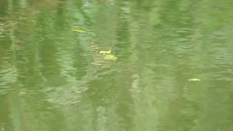 Leaves floating on and under water