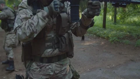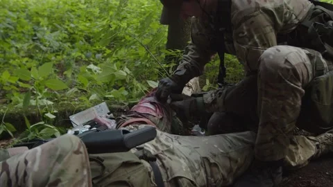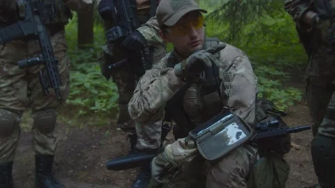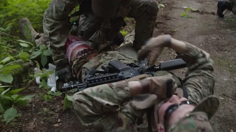 (84)Squad of military men and Woman in action, getting in ambush, hand grenade explosions, Evac process of injured soldier, Counter-terrorist actions, Interrogation of prisoner of war