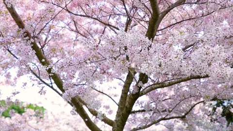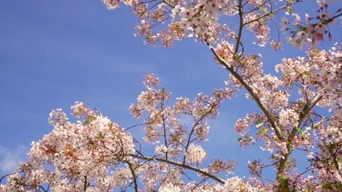 Spring nature stock video footage. Cherry blossom trees in bloom. Flowering plants.