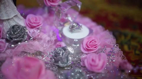 Wedding Ring and decorated Stand Stock Footage