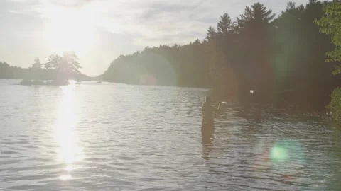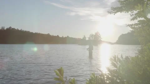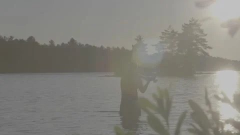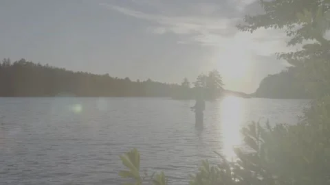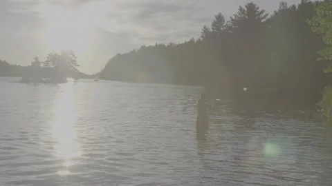 Slowmotion footage of fishing and lake muskoka vibes