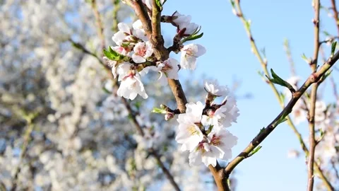 Flowering orchards in spring, ripe fruits and vegetables, vineyards, harvested crops, greenhouses