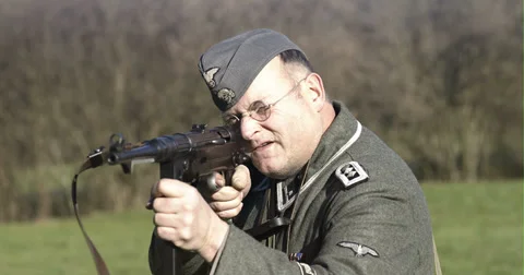 0491 World War 2 - Reenactement Stock Footage