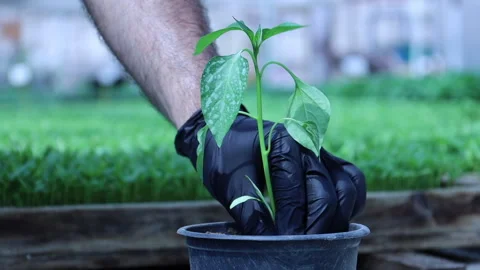 Planting seedlings, preparing the soil.